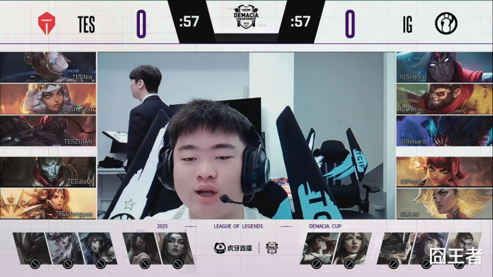 第二局比赛逐梦国际登陆,IG蓝色方,禁用:塞拉斯;阿卡丽;加里奥;洛;布隆,选用:Soboro纳尔;Wei佛耶戈;Renard辛德拉;Photic炸弹人;Jwei牛头;TES红色方,禁用:石头人;杰斯;兰博;蔚;女枪,选用:Zuian武器;naiyou皇子;Nia妖姬;JiaQi女警;Fengyue蜘蛛